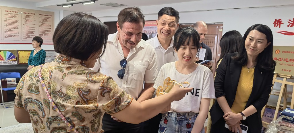 邯郸市妇女手工业协会会长、拉舍尔服饰有限公司总经理张程静,妇女手工业协会副会长、雍和工坊总经理尉迟方舟,妇女手工业协会副会长、圣奥化妆品有限公司董事长李静,妇女手工业协会副会长单位、如心工艺品有限公司董事长郝磊,妇女手工业协会副会长张静等,各自带着文创产品在侨胞之家进行展示,并向来宾一一介绍,引起外国朋友的浓厚兴趣。